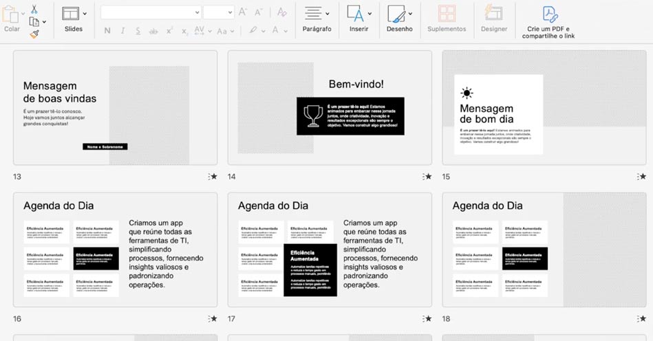 Sim. No entanto, alguns recursos do template podem ser perdidos dependendo da versão do PowerPoint que você está usando. Esses templates foram projetados para o Microsoft PowerPoint 2019 e versões mais recentes (2021 e Microsoft 365).